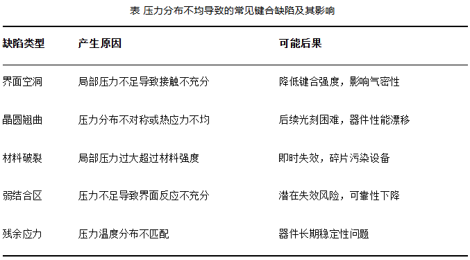 在晶圆键合工艺中,压力分布的均匀性与精确控制是决定键合质量的核心因素之一。压力作为键合过程中的关键参数,直接影响着晶圆间接触的紧密程度、界面反应的充分性以及最终键合强度。